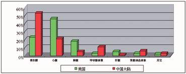 每個國家由于生活習慣、自然環境和一些遺傳因素的不同,各種疾病的發病率也有明顯的區別。這種區別就會導致臨床檢查項目的區別。由于臨床檢查項目的不同,所以臨床使用的設備也會有一定的差異。圖3所示中國大陸和美國臟器核醫學檢查比例有明顯區別。